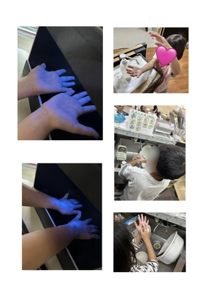 手洗いチェッカーを使用して手洗い研修を行いました。